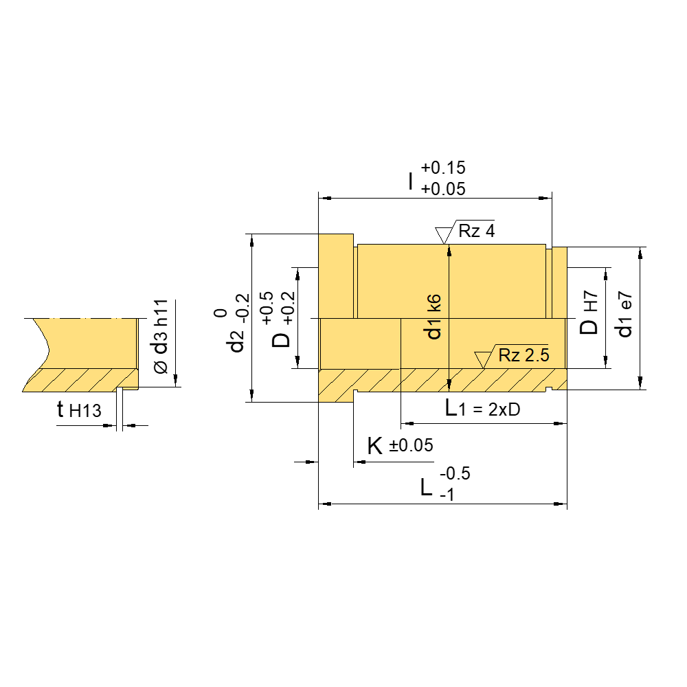 | Bestellnummer | d1 | d2 | d3 | l | L | t | D | K |