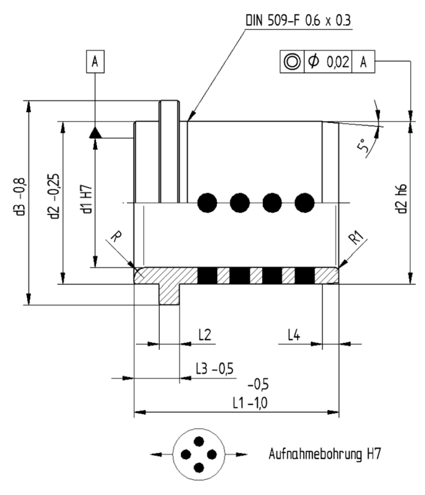 | Bestellnummer | d1 | d2 | L1 | d3 | L2 | L3 | L4 | R | |