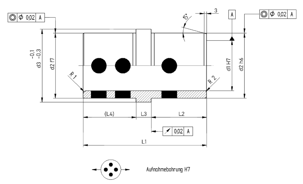 | Bestellnummer | d1 | d2 | L1 | d3 | L2 | L3 | L4 | R1 | R2 | L |