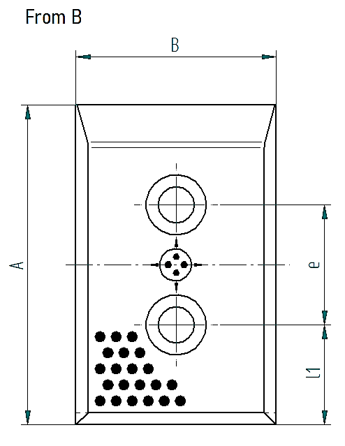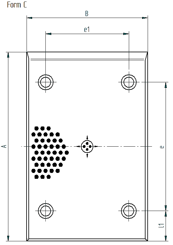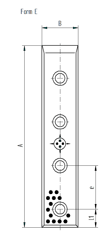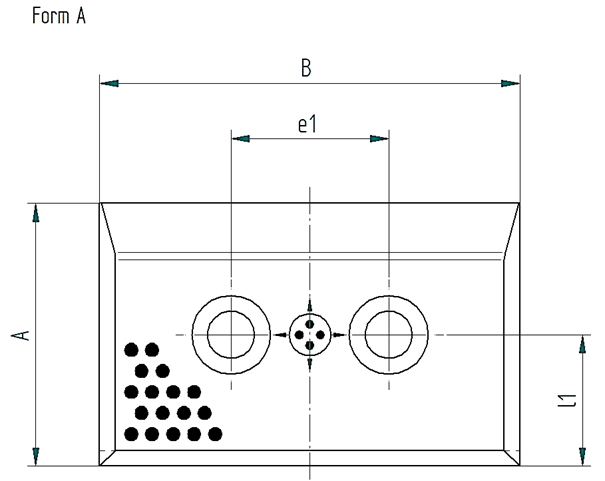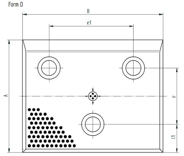 | Bestellnummer | d1 | d | l1 | L | t | e | e1 | Form | Anzahl Bohrungen | A | B |