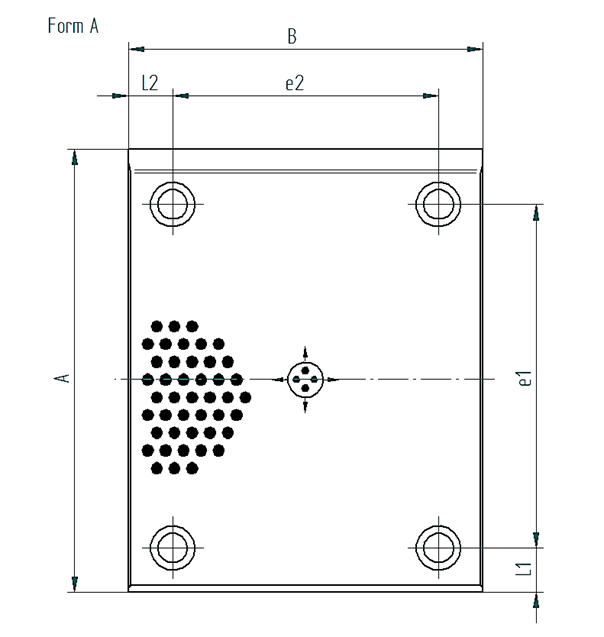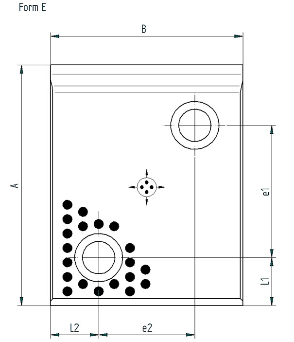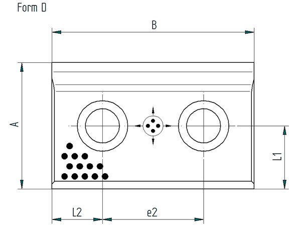 | Bestellnummer | L1 | L2 | e1 | Form | e2 | A | B |