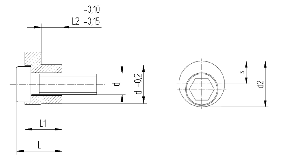 | Bestellnummer | d1 | d2 | L1 | L2 | d | L | s | Schraube DIN 7984 |